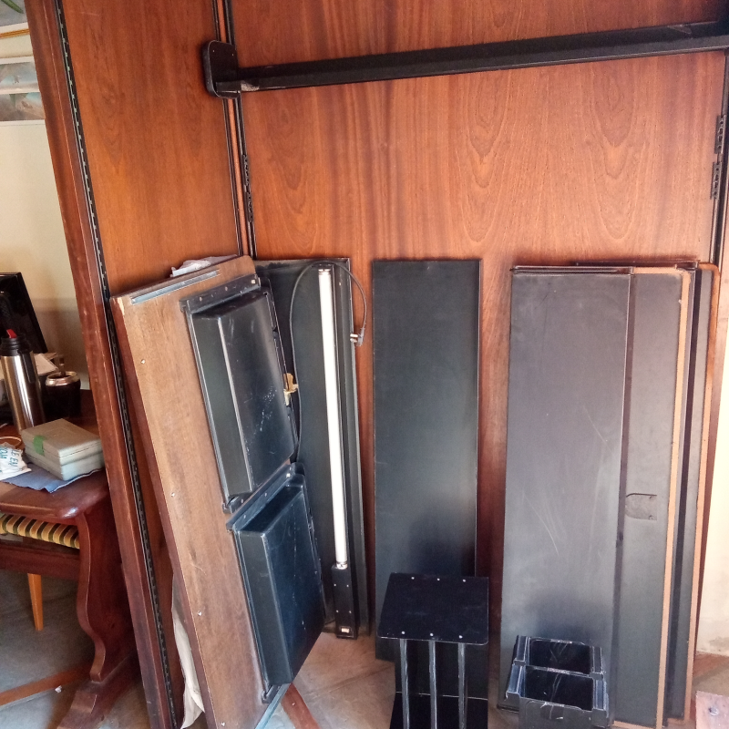 3 REPISAS (UNA ANGOSTA, UNA ANCHA, OTRA ANCHA CON LUZ DE TUBO FLUORESCENTE, AMBAS CON TAPAS FRONTALES)